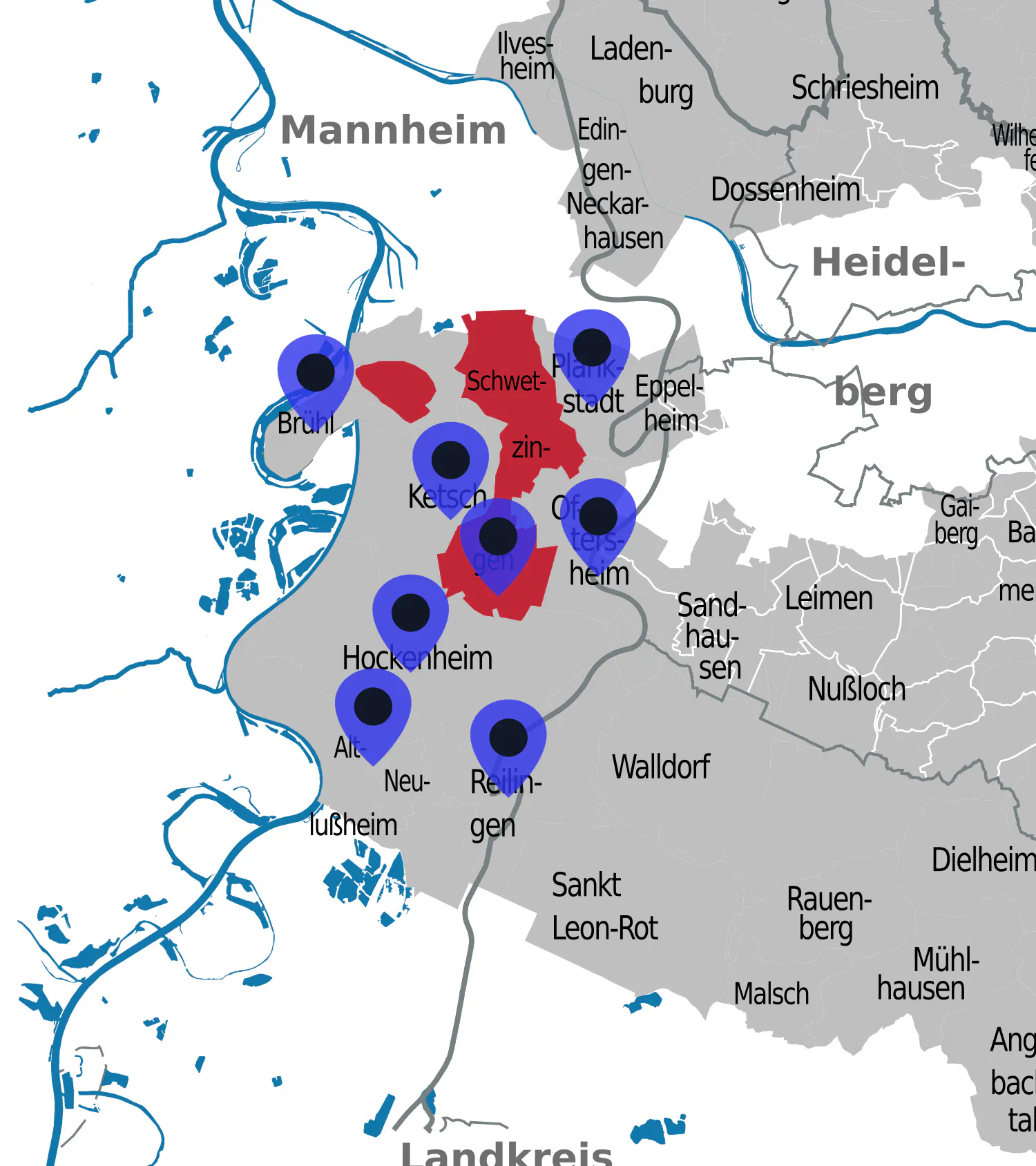 Unser KreisVereineSGi KetschSG Brühl 1907 e.V.Schützenverein Altlußheim e.V.Schützenverein Hockenheim 1923 e.V.Sportschützenverein Oftersheim e.V.Kleinkaliber-Sportschützenverein 1927 Plankstadt e.V.Sportschützenverein 1929 e.V. ReilingenSchützengesellschaft Schwetzingen 1862 e. V.